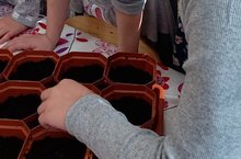 Детский сад продолжает работать по проекту "Растем вместе". Семена саженцев деревьев подрастают в горшочках. Дети с удовольствием ухаживают за рассадой, ведут дневник наблюдений.