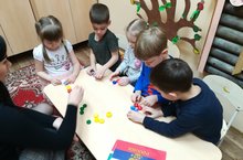 В нашем детском саду работат педагог-психолог Галяутдинова Алла Тагировна. Специалист работает с детьми в кабинете психолога, в сенсорной комнате. Играет с цветами, звуками и зверушками. Особенно детям нравится песочная терапия. Они создают свои шедевры на песочном столе!