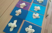На предложение изготовить своими руками белых голубей — символов мира, добра и благополучия, воспитанники откликнулись с удовольствием. Дети делали голубей из соленого теста. Голуби получились разные, но одно объединяло этих белых птиц — их делали дети с верой в мирное будущее и желанием, чтобы война никогда не повторилась.