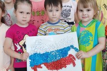 Накануне была проведена предварительная работа, где знакомили детей с государственными символами России, беседовали о стране, читали стихи, пословицы и поговорки о нашей Родине.