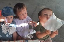 Воспитатель Айгюн Бахтияровна вместе с малышами «капельками» активно участвовали в экспериментах, радовались открытиям, и получили множество положительных эмоций. Пытались увидеть воздух, поймать воздух – ветер. При помощи ленточек искали ответ на вопрос: «от куда дует ветер?». Двухлетние «Капельки» показали пальчиком и ответили: «Оттуда». Что уж точно поняли наши малыши, что Воздух - Ветер двигает предметы. Цель мероприятия – расширить представления детей о свойствах воздуха и его значении – была успешно достигнута. Особенно большой восторг дети испытали от запуска корабликов и парусников.