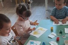 В преддверии замечательного праздника "День семьи, любви и верности" в ясельной группе прошло тематическое занятие по изобразительной деятельности в нетрадиционной технике рисования ладошками "Моя семья". Малыши совместно с воспитателем Айгун Бахтияровной решили порадовать родителей и сделали красивые рисунки, обозначили ладошками (пальчиками) членов своих семей, поиграли в пальчиковую игру "Этот пальчик папочка, этот пальчик мамочка..."