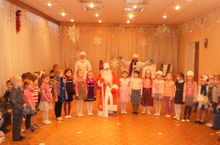 Подошел к концу проект "Новогоднее подворье". Перед дальней дорогой в Великий Устюг и на Северный Полюс, в детском саду остановились на отдых сказочные персонажи Снегурочка, Зайка из сказки "Заюшкина избушка", Снеговик, Зимушка-Зима и даже Дед Мороз. Дети подготовились к приходу гостей - сделали вместе с родителями поделки-подарки, украсили группу рисунками и волшебными предметами быта, приготовили снежное угощение, разучили стихи и песни. В благодарность Снегурочка и Заюшка показали детям 1-й и 2-й младших групп кукольный спектакль, а более старших детей ожидало театрализованное представление с играми, плясками, интересными конкурсами и весёлыми заданиями, а также спортивное развлечение на улице.