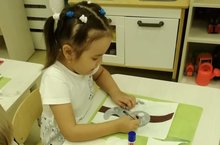 Дети старшей группы создают сложную аппликацию с изображением коалы. Всю цветную бумагу тонировали сами!