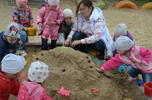 Сегодня у детей был праздник "Городок в песочнице" (в рамках недели "Лепка из песка и глины"). Все дети занимались строительством необычных замков из песка и природных материалов, а потом рассказывали, кто живёт в сказочных домах. В конце праздника детям были вручены Дипломы участников и победителей конкурса "Город мастеров".