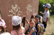 Летом на прогулке можно не только играть, но и создавать настоящие шедевры. На улице можно рисовать мелом и даже красками. Стоит разнообразить этот процесс. Например, нарисовать «картину» на стене какой-то хозпостройки. Или устроить соревнование между детьми по «наскальным» рисункам мелом. Или организовать командное рисование, где каждый участник с закрытыми глазами дорисовывает деталь.