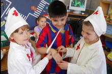 В детском саду проходит месячник безопасности. В ходе этого события проводятся ряд интересных и поучительных мероприятий. Например, одним из них было практическое занятие об оказании первой медицинской помощи пострадавшим. Сначала дети оказывали первую помощь своим любимым куклам, а затем попробовали свое мастерство медицинских работников на своих товарищах.