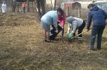 Балалар бакчасында яз җитү белән кыштан калган чүп-чарны җыю буенча байтак эш башкарыла. Бүген дә күмәкләшеп өмә ясап алдык.