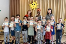 Ежегодно в нашем садике в конце учебного года мы проводим английскую неделю (17-21.04). В рамках этого проекта, на этот раз, было охвачено несколько подвижных игр, таких как, «Кот, кот какая сегодня сметана на обед?», «Кошки мышки», «Большой, плохой волк». В конце английской недели, мы с детьми, которые ходят на кружок «Занимательный английский», показали сказку «Златовласка и три медведя». И в завершении проекта детей ждал сюрприз - снова наша гостья из Африки по имени Ди. Вместе с детьми мы играли в подвижные игры на свежем воздухе и Ди научила наших ребят петь песню про части тела. Всем такое мероприятие пришлось по душе, но больше всего нашим «юным англичанам» понравилась торжественная часть, где им вручали дипломы за участие в спектакле.
