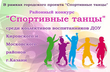 В рамках городского проекта на базе детского сада прошел районный конкурс "Спортивные танцы" среди коллективов воспитанников ДОУ Кировского и Московского районов г.Казани. Наш детский сад с удовольствие принял самых спортивных и талантливых детей района.