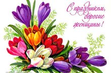 Поздравляем вас с чудесным праздником, с праздником женской красоты и очарования, с праздником весеннего вдохновения и светлой радости. Этот красивый праздник в начале весны приходит к нам, когда всё оживает, расцветает и распускается. Пусть в вашей жизни будет вечная весна, пусть ярко светит солнце, пусть поют птицы, пусть дни будут светлыми и безоблачными. В день 8 марта от всей души желаем постоянного ощущения счастья, волшебных чувств любви и нежности, прекрасного настроения и непобедимого интереса ко всему новому в жизни. Улыбок, хорошего настроения, радости, счастья!