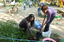 В нашем детском саду прошла традиционная, ежегодная, экологическая акция: «Детский сад-Цветущий сад». В посадке деревьев, кустарников и цветов приняли активное участие ребята всех возрастных групп, родители и сотрудники детского сада. С большим интересом дошкольники совместно с педагогами планировали посадку деревьев на территории ДОУ, определяли места, где молодым саженцам будет комфортно расти.