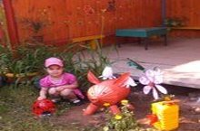 На участке второй младшей группе появились забавные паросёнок, цыпленок и божья коровка.