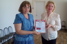 Заведующая нашего детского сада Жанна Викторовна, поздравила музыкального руководителя Татьяну Евгеньевну с финалом районного фестиваля детских талантов "Стань Звездой" и вручила Диплом первой степени от Отдела образования управления образования исполнительного комитета муниципального образования г.Казани по Кировскому и Московскому районам.