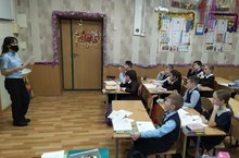 Цель беседы -"Профилактика детского дорожно-транспортного травматизма". Инспектор по пропаганде безопасности дорожного движения рассказала учащимся о том, как правильно вести себя на проезжей части и объяснила правила поведения в период катания с горок, на коньках, недопустимости выезда на проезжую часть. В конце встречи инспектор ГИБДД пожелала детям быть осторожными, внимательными и беречь себя на дороге.