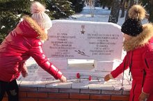 Ученики 4 б класса в торжественной обстановке возложили цветы к памятной доске Героя Советского Союза Алтынова Н.Н. В знак признания бессмертного подвига, школьники читали стихи и почтили память минутой молчания.