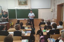 Инспектором ГИБДД в рамках месячника "Внимание-дети!" проведена профилактическая беседа с учащимися школы о безопасности дорожного движения