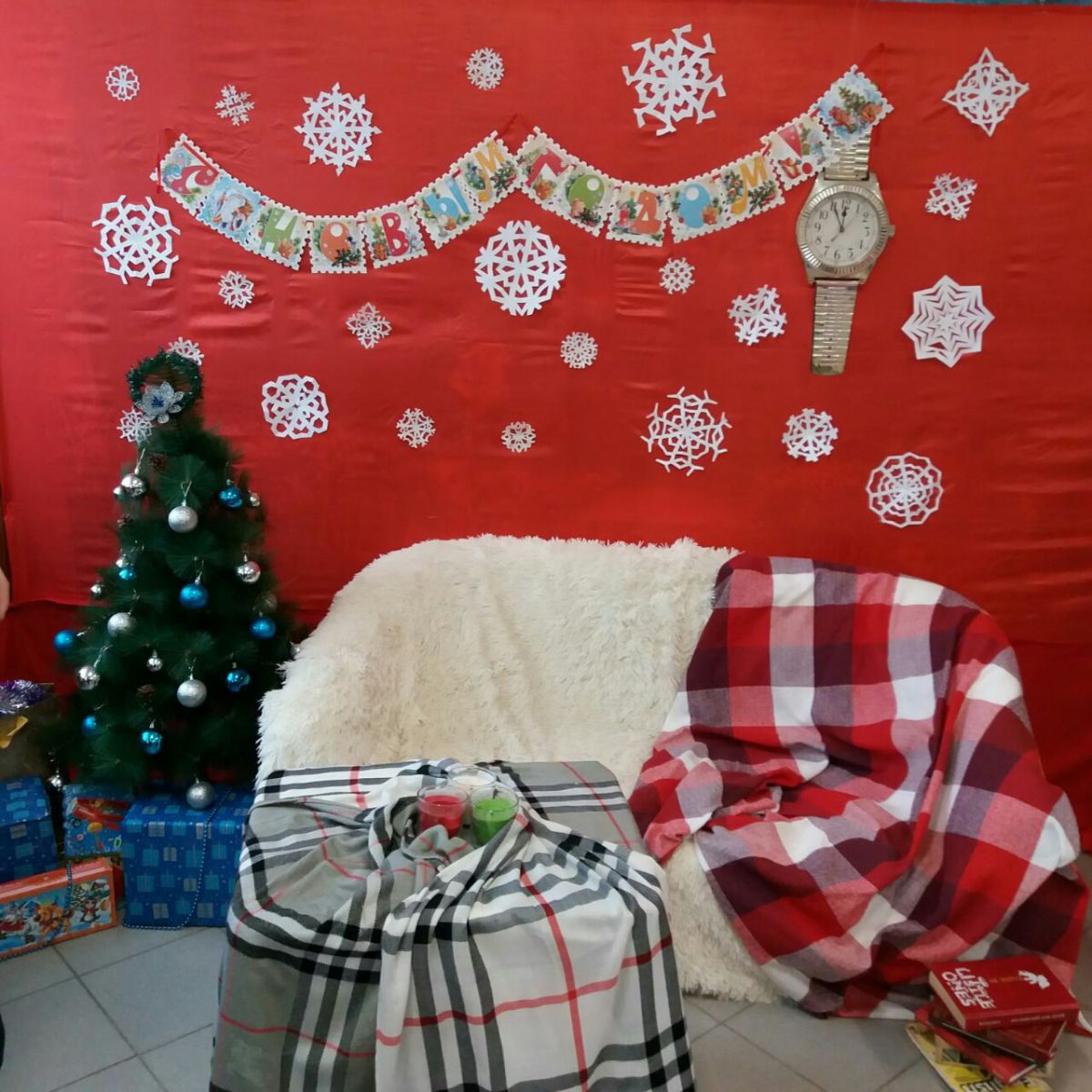 Лидеры ДОО Радуга организовали и провели новогодний конкурс фотозон. Победителем стала команда дизайнеров 9 б класса