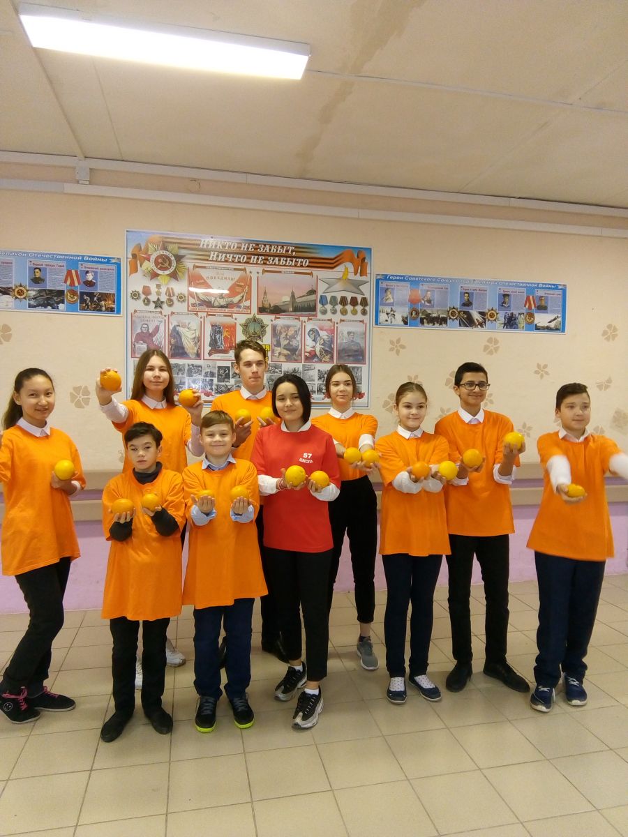 На протяжении 11 лет наша ДОО «Радуга» организует и проводит День Апельсина. Это наш авторский проект разработал актив ДОО , а все ученики с 1-11 классы нашей школы с удовольствием приняли самое активное участие. Собранные апельсины и канцтовары наши ученики отвозят в Детский хоспис имени Анжелы Вавиловой, Дербышкинский дом –интернат, Детский интернат №7, Васильевский детский санаторий , Санаторий для детей «Березовая роща».