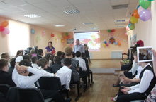 В актовом зале школы состоялась встреча с представителем БФ «Счастливые истории». Лилия Гусмановна побеседовала с детьми начальной школы на тему: «Книга-мой друг». Вручила ребятам книги и сладости.