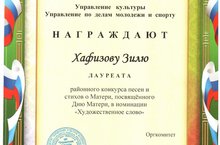 Хафизова Зиля в номинации "Художественное слово" стала лауреатом.