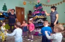 Бүген зурлар төркеме балалары Яна елны озатып чыршы әйләнәсендә җырладылар.