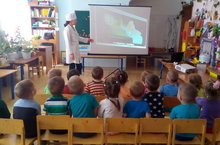 Шәфкать туташы Закиева Ләйсән Нургалиевна балаларыбызга прививка ясату хакында сөйләп, мультфильм нигезендә аның кирәкле процедура икәнен төшендереп, балаларда курку хисен "юк итте".