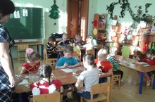 Уртанчылар төркемендә рәсем ясарга бик яраталар, ә 2 кечкенәләр төркеме балалары Кар бабай ябыштыралар.