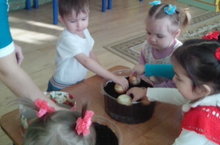 Дети средней группы с желанием играют в настольный театр "Репка".