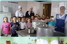 В этот день воспитанники пришли поздравить поваров детского сада с их профессиональным праздником и поблагодарить за вкусные и полезные обеды. Да, и сами ребята очень часто играя, пробуют себя в роли поваров: пока на игровой кухне, пока с игрушечными продуктами. -