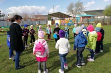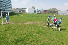 Уртанчылар төркеме балалары саф һавада хәрәкәтле уен уйныйлар.