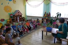 Кечкенәләр төркеме балаларына тәрбияче Илсөяр Хазиевна гөлләр турында сөйли.