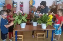 Зурлар төркемендә тәрбияләнүче балалар гөлләрне тәрбияләргә яраталар. Алар гөлләргә су сибәләр, яфракларының тузаннарын сөртәләр.