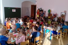 Безнең кечкенәләр төркемендә тәрбияләнүче балаларыбыз бүген бик тырышып рәсем ясадылар. Алар шарларны тезәр өчен җеп ясадылар. Әфәрин, булдыралар!
