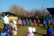Саф һавада уртанчылар төркеме балалары бик тырышып хәрәкәтле уен уйнадылар.