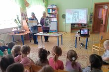 Воспитанники детского сада совместно с Хазиевой Г.Г. и Зарипова Р.Б. вспомнили страницы героического периода жизни и подвига Мусы Джалиля, посмотрели презентацию "Муса Джалиль-герой Татарского народа". Так же дети познакомились с литературной деятельностью поэта, с его знаменитой "Моабитской тетрадью". Мероприятие завершилось чтением стихов поэта, где чувствуется человеческое тепло, жизнелюбие, доброта. -