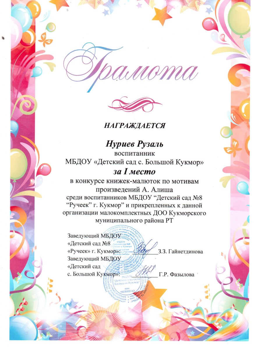 Муниципальное бюджетное дошкольное образовательное учреждение "Детский сад села Большой Кукмор" Кукморского муниципального района Республики Татарстан/ Татарстан Республикасы Кукмара муниципаль районының "Зур Кукмара авылы балалар бакчасы" муниципаль бюджет мәктәпкәчә белем бирү учреждениесе