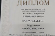 Бадрутдинов Амир-призер республиканской олимпиады школьников по истории Татарстана и татарского народа. Поздравляем!\Бәдертдинов Әмир Татарстан һәм татар халкы тарихы буенча республика олимпиадасы призеры. Котлыйбыз! 20.01.2022