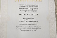 Бадрутдинов Амир-призер республиканской олимпиады школьников по истории Татарстана/Бәдретдинов Әмир- Татарстан тарихы буенча республика олимпиадасы призеры 25.01.2021