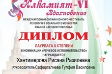 Хантимерова Рисана- лауреат международного конкурса "Илһамият"\ Хантимерова Рисәнә- "Илһамият" халыкара бәйгесе җиңүчесе 28.12.2020