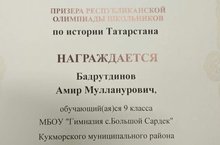 100 ЛЕТ ТАССР. Бадрутдинов Амир-призер республиканской олимпиады школьников по истории Татарстана/ ТАССРга -100 ел. Бәдертдинов Әмир- Татарстан тарихы буенча укучыларның республика олимпиадасы призеры 12.01.2020