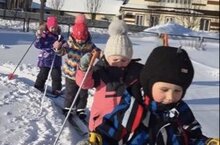 Воспитанники старшей группы старательно познают азы лыжного спорта вовремя физкультурных занятий на свежем воздухе. Они учатся сами надевать лыжи, управлять лыжными палками,координировать свои действия на лыжах.Веселое настроение, озорные улыбки ребят явное доказательство того, что этот вид спорта им по душе! Воспитатель Доминова Г.Ф.