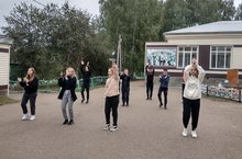 Учащиеся 9, 11 классов присоединились к акции "Добрая неделя" и провели зарядку под девизом: "Спорт - это жизнь!"