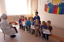 С воспитанниками старшей группы детского сада совместно с фельдшером ФАП Саляховой Р.Ф. проведена интерактивная игра «Мой руки правильно». Детишки с удовольствием отвечали на вопросы, отгадывали загадки и демонстрировали полученные знания по вопросам личной гигиены и по уходу за полостью рта.