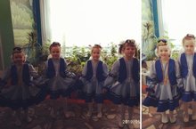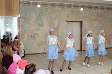 Рәсемдә: балалар бакчасында тәрияләнүче нәниләр кичәдә катнашучыларны бию белән сәламли