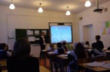 Рәсемдә: мәктәбебезнең башлангыч сыйныфлар укытучысы Рәхимова Ризәлә Камиловна укучылар белән дәрес вакытында
