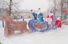 Бүген барыбыз да бергәләп кардан сыннар әвәләдек. Хезмәтебезнең нәтиҗәсе: мәктәбебез каршында матур гына шәһәрчек барлыкка килде. Ул һәркемне үзенә чакырып тора.Рәхим итегез!