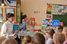 В рамках " Недели безопасности" ознакомление воспитанников с выставкой литературы по ПДД. Воспитатель Доминова Г. Ф.