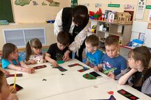 В филиале МБОУ прошел «День Воспитания». В рамках Республиканской просветительской акции «Знаю Татарстан», воспитатель разновозрастной группы 3-7 лет Доминова Г.Ф. организовала занятие о Татарстане. Цель мероприятия: расширить представления детей о родном крае, культуре и традициях. Прививать любовь к родным местам, вызывать желание больше узнать о своем крае и вызывать чувство восхищения красотой родных мест.Занятие началось с беседы о Родине,вспомнили знания о Республике Татарстан, о Раисе РТ, об атрибутах РТ ,о столице Казань. Назвали крупные города РТ и какими ремеслами славятся города РТ. Рассказали, что наш Кукмор знаменит валенками, заводом металлопосуды, вкусным лимонадом, швейной фабрикой, горнолыжным курортом, и самым большим количеством молока, люди каких национальностей проживают в Татарстане и в Кукморе, и как дружно они живут, чтят народные традиции. Воспитанники рассмотрели национальные костюмы и их узоры. Воспитатель предложила ребятам самим украсить обувь и калфак татарскими узорами.