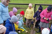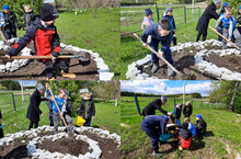 На участке филиала МБОУ появились молодые саженцы Воспитанники старшей группы приняли участие в посадке новых деревьев и внесли большой вклад в озелении участка.